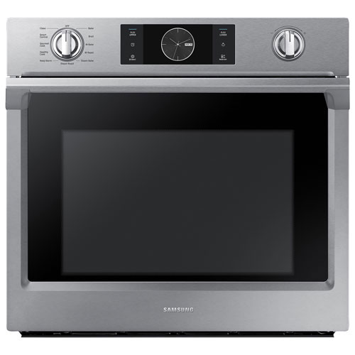 Rise to meet every meal fully-prepared with the Samsung 5.1 cu. ft. convection wall oven with Steam Cook, Digital-Analog Controls, and Flex Duo. Boasting a sleek design and a range of features to enhance your cooking performance, this oven will take every chef to the next level, whether you're an old pro or a new beginner.Open Box - Samsung 30" 5.1 Cu Ft True Convection Electric Steam Wall Oven - Stainless Steel - Scratch & Dent
