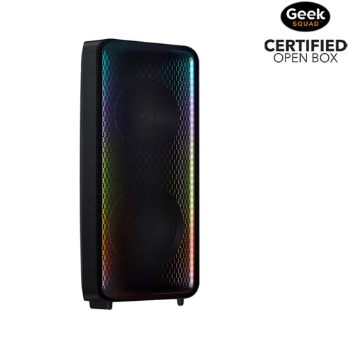 Get the party started with the Samsung MX-ST50B/ZC party speaker. This 240-watt speaker connects via Bluetooth to bring powerful bass to any indoor or outdoor area. Enable Party Lights+ mode to create a fun party mood with music and lighting.Geek Squad Open Box