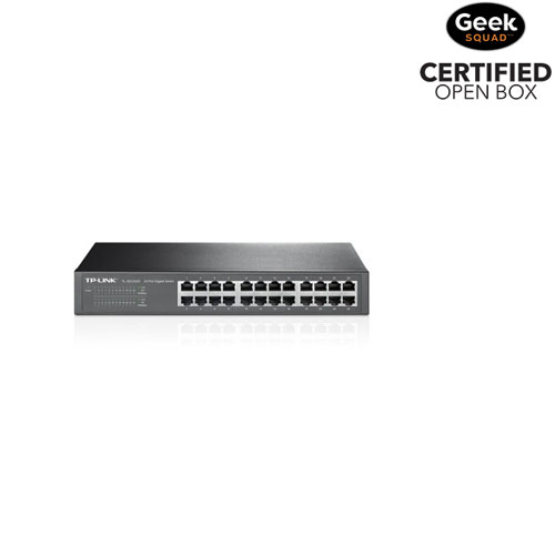 The TL-SG1024D lets you easily transition to Gigabit Ethernet. Because all 24 ports support auto MDI/MDIX, there's no need to worry about cable configuration; all you need to do is plug-and-play for installation. With a low power consumption design, it also functions as an eco-friendly alternative for your business network. .Geek Squad Open Box