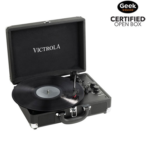 Mix classic design with modern features, and you'll get the Victrola Journey+ Bluetooth turntable. This music player offers a high-performance belt drive system and three platter speeds to help you spin everything from vintage records to new favourites. You can also connect via Bluetooth to play modern music through the turntable speakers.Geek Squad Open Box