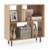 The open shelf bookcase offers a 3-tier storage system with 4 spacious compartments, ideal for organizing books, CDs, plants, and decorative items. It provides an efficient and aesthetically pleasing way to manage your space.