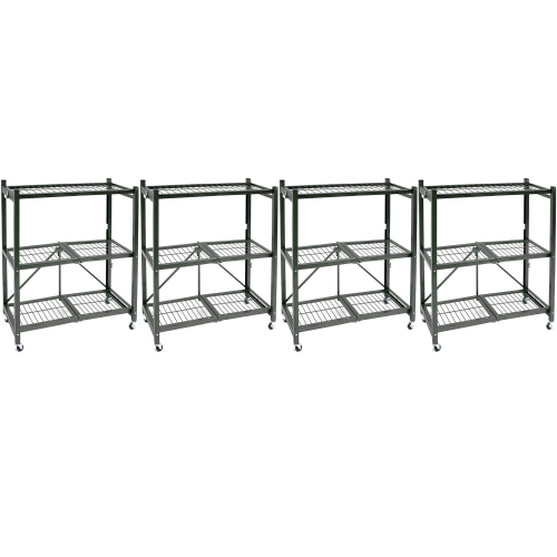 Origami R3 Foldable 3-Tiered Shelf Storage Rack & Wheels, Pewter (4 Pack)
