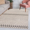 Inspired by Moroccan tribal designs, our modern geometric rug adds graphic punch to almost any space, indoors or out. The two-tone, family-friendly design is a smart addition to your living room, dining room, bedroom, porch or patio.
