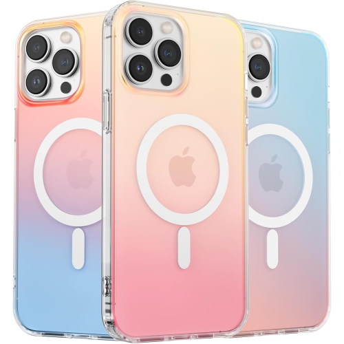 Iridescent Magnetic Case for iPhone 13 Pro Max, designed to captivate with its stunning rainbow gradient that shifts with light and angles. Crafted with a hard PC back for robust protection, it resists scratches while the anti-yellowing TPU ensures lasting beauty. This case features a secure, non-slip grip and is fully compatible with MagSafe, allowing effortless wireless charging. Enhance your style while keeping your phone safe with this exceptional case.
