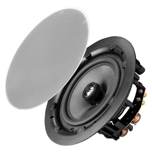 The ACE840 in-ceiling speaker offers elegance, style, and superb audio. Rated at 100W, it fills large spaces with beautiful sound, while the 8" Fiberglass Woofer and 1" Pivoting Titanium Dome enhance audio. Its nearly invisible 0.15" micro-flange grille ensures a sleek, clean look, ideal for home theaters and media rooms.