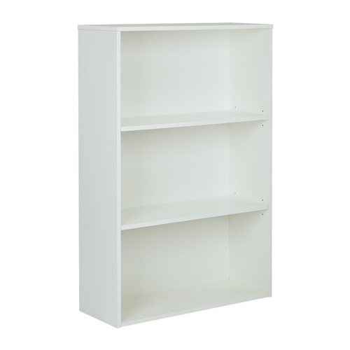 OSP Home Furnishings Prado 48 inch 3 Shelf White Bookcase Engineered WoodKeep books, binders, and files neatly arranged in your home or office with Office Star 3-Shelf Multipurpose Bookcases. Constructed with laminate and heavy-duty 3/4” thick shelves with smooth, impact-resistant edges to ensure long life. Includes 2 adjustable and 1 bottom shelf. These easy-to-assemble, fashionable, and functional Bookcases are available in Black in White finish and are ideal for a...