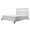 Bring modern style and sleek design to your bedroom with this low-profile platform bed. Crafted with an engineered wood frame, this bed is wrapped in foam with Faux Leather upholstery. The panel headboard features a rectangular silhouette with an integrated light bar with 16 colors, great for providing mood lighting for when you read or relax in bed. Low block feet support matching sideboards, while a 24-piece slat kit elevates your mattress without needing a box spring for s