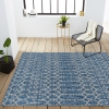 With its geometric design inspired by Moroccan tribal patterns, our Boho-chic rug adds eclectic style to an outdoor porch or patio. Varied tones of deep blues mingled with a light gray pattern give this rug a hand-woven, vintage vibe. The flatweave design is great for high-traffic spaces indoors too.