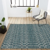 With its geometric design inspired by Moroccan tribal patterns, our Boho-chic rug adds eclectic style to an outdoor porch or patio. Varied tones of deep blues and teal mingled with a light gray pattern give this rug a hand-woven, vintage vibe.
