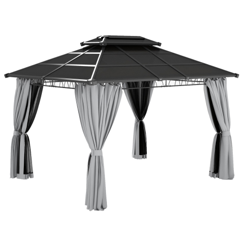 Outsunny 10' x 12' Outdoor Gazebo Canopy, Double Roof Hardtop Gazebo with Polycarbonate Roof, Steel Frame, Nettings and Curtains, for Garden, Lawn, Backyard and Deck, Light Grey