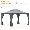 Outsunny 10x13ft Garden Gazebo Double-Tiered with Curtain Outdoor Shelter Backyard Canopy Grey