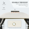Outsunny 12' x 10' Outdoor Patio Gazebo Canopy with Double Tier Roof, Removable Mesh Sidewalls, Triangular Display Shelves, Beige