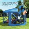 Outsunny 12' x 12' Hexagon Pop Up Screen Tent, Automatic Camping Shelter Picnic Canopy Outdoor Sun Shade with Mesh Sidewalls and Carry Bag Blue