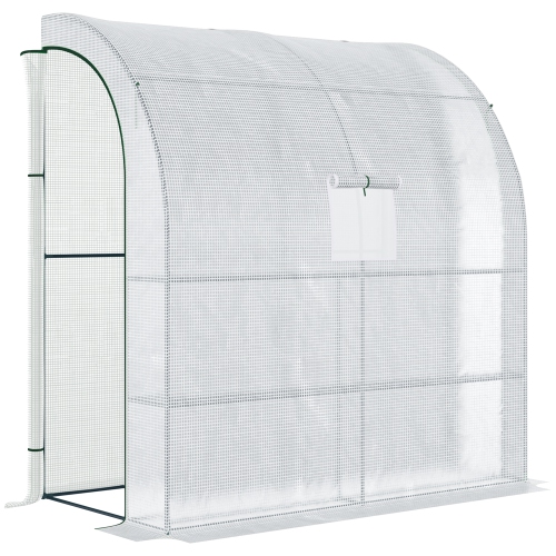 Outsunny 7' x 3' x 7' Outdoor Lean-to Walk-In Greenhouse, Plant Gardening Green House with Roll-up Mesh Windows, Zipper Door and 3-Tier Shelves, White
