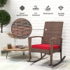 Outsunny Outdoor PE Rattan Rocking Chair, Garden Wicker Glider Rocking Chair Set with Armrest and Cushion for Patio, Balcony, Deck, Wine Red