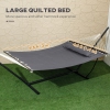 Outsunny Quilted Double Hammock with Stand and Pillow, Heavy Duty 2 Person Hammock with Spreader Bars, Cotton Rope Hammock for Outdoor Camping Beach, Dark Grey