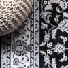A classic medallion design gets a modern makeover in our Persian-style gray rug. The ornate pattern features a central field with traditional leaves and flowers, and a cream colored palmette border.