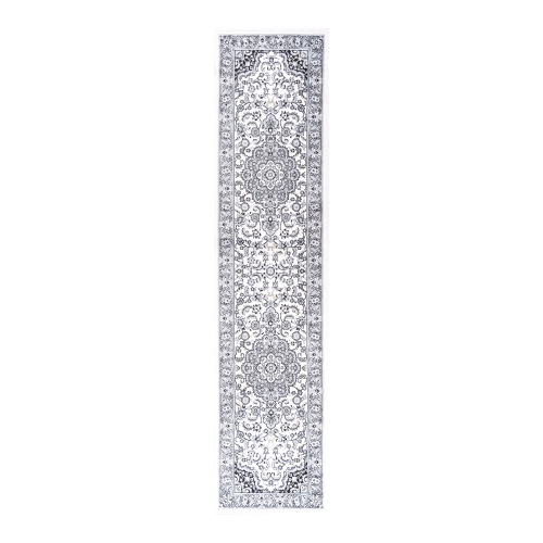 A classic medallion design gets a modern makeover in our Persian-style gray rug. The ornate pattern features a central field with traditional leaves and flowers, and a light gray palmette border.