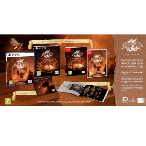 Immerse Yourself in Creativity with Papetura - Craft Edition for PlayStation 5!Explore the magical world of Papetura like never before with the Craft Edition for PlayStation 5. This edition includes exclusive crafting tools, an intricately designed art book, and unique in-game items to elevate your paper-crafted journey. Step into a world built entirely from paper, where stunning visuals and creative puzzles await at every corner.The Craft Edition offers a deeper crafting