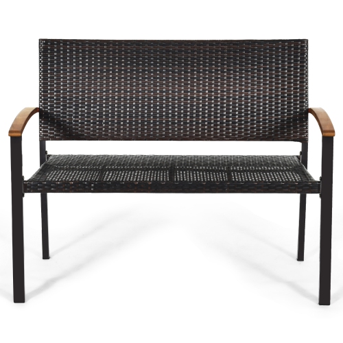 Patiojoy Patio Furniture Weather-Resistant Rattan Bench Wicker Loveseat Steel frame for Yard Garden Poolside