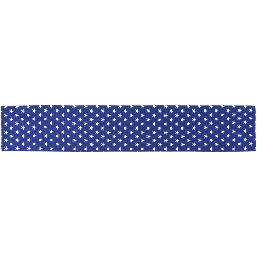 Navy patriotic themed table runner. Navy runner is accented with white stars. Gives protection from spills and scratches
