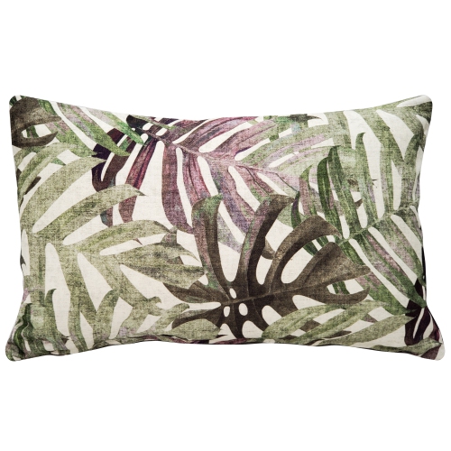 The 12x20 inch rectangular Pattaya Purple Palm Throw Pillow is a soft 100% cotton pillow with a large palm leaf design. The palm leaves are in shades of deep purple and dark green and the background fabric color is a mottled cream. This is an wonderfully organic, botanical design on a beautiful, high quality cotton fabric.