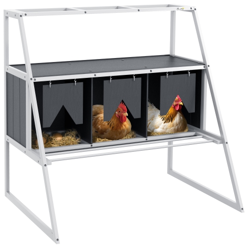 PawHut Chicken Nesting Box, 3 Compartments Wooden Nesting Boxes Hen Laying Egg House with Privacy Curtains, Standing Perches, Up to 6-12 Hens