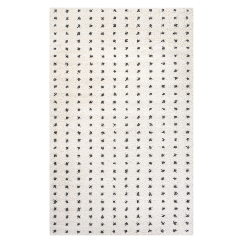 Inspired by mid-century rugs, our geometric dot rug has a soft, low shag pile. The all-over pattern is woven in gray on an ivory background. Add some graphic punch to your living room, bedroom, or reading nook with this easy-care rug.