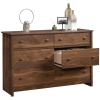 What you want out of a dresser is simple—spacious storage, good looks, and easy to rearrange in your home. This 6-drawer dresser from the Pemberly Row collection gives you just that. We know how difficult it is to cram sweaters, denim, and more into drawers that are too small. That's why this bedroom dresser has four lower drawers that are extra deep for those items that always seem to get stuck while trying to close the drawer. Use the smaller top two drawers of this double dresser for socks, t-shirts, makeup, and more, allowing you to use the top surface space for your jewelry, a candle, photos of your loved ones and your alarm clock. A tip restraint strap is included for extra safety of your dresser with drawers. Quick and easy assembly with a T-slot drawer system and slide-on moldings means you will spend less time assembling and more time incorporating this dresser into your space with your own personal touches. Finished in a Grand Walnut, this wood dresser is the perfect addition to the master bedroom, guest room, or your spare room for extra hidden storage.