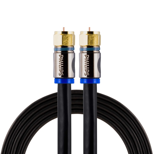 Philips RG6 Quad Shield Coaxial Cable, 6 ft. in-Wall Rated, Ideal for TV Antenna DVR Satellite Cable, F-Type Connectors, 3 Ghz Digital, Black, SWX9444B/27