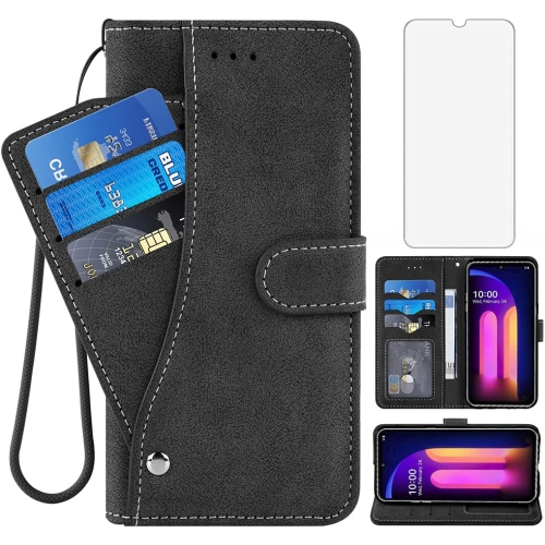 Phone Case for LG V60 ThinQ V60ThinQ 5G G9 Thin Q, Flip Wallet Cover with Tempered Glass Screen Protector Stand