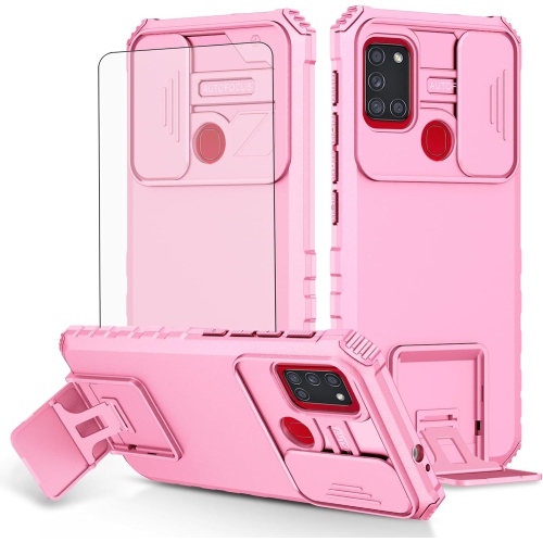 Compatible Models : Compatible with Samsung Galaxy A21S, NOT compatible with other devices.Screen Protector : We will send the phone case with 1 piece tempered glass screen protector.KickStand : Added built in kickstand holds your phone at optimal viewing angles , when you are watching video, movie optimum or playing games.Sliding Camera Cover Camera Cover protects the camera from collision and scratches , you just need slide left and right to protect/use the camera lens