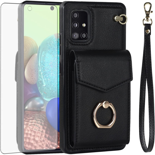 Compatible Models : Compatible with Samsung Galaxy A71 5G, NOT compatible with other devices.Gift : We will send the phone case with 1 piece tempered glass screen protector + 1 piece detachable wrist strap. It would be a nice gift for your lover, your family and your friends.Card Holder : 3 card slots + 1 cash bag securely hold your cards and some cash without taking wallet outside.Ring Kickstand : 360 degree rotatable Built-in flexible kickstand, Provides your Phone wit