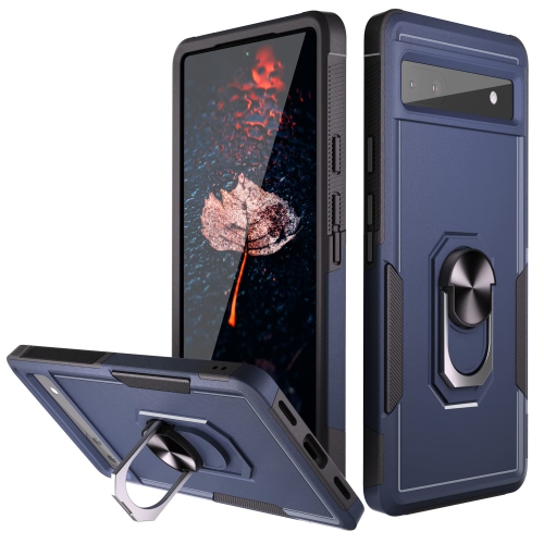 Pixel 6a Case, with 360° Metal Rotating Ring Holder Kickstand (Support Magnetic Car Mounts), Dual Layer Full Body Shockproof Protective Cover Case 6.1 inch (Midnight Blue)