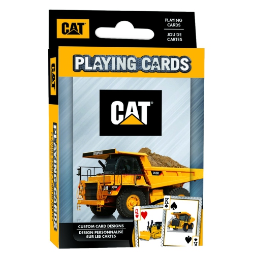 These Caterpillar playing cards are the perfect deck for any CAT fan! Each standard deck contains 52 cards and 2 jokers. Card-back designs feature the cat logo. All face cards and jokers have