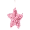 Plush Feather Star Glittered Christmas Ornament with Hearts -12" - Pink