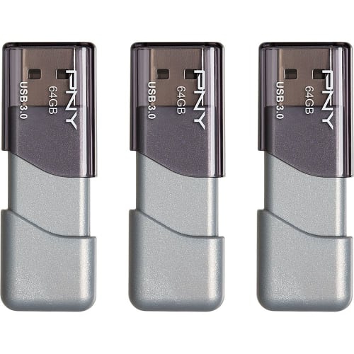 PNY Turbo Attaché 3 64GB USB 3.0 Gray USB Flash Drive 3 Pack (P-FD64GX5ATT03-MP)