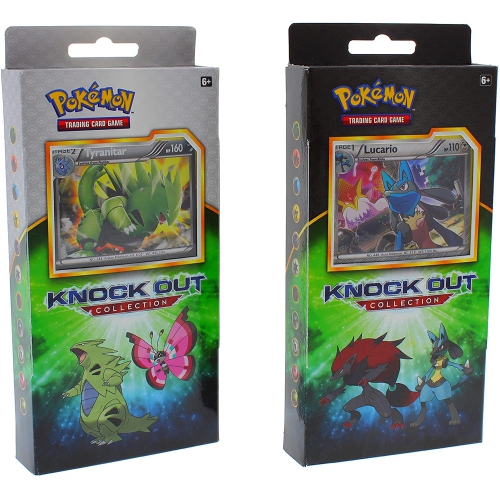 A Knock Out Deal!Three great Pokemon Cards - steely Lucario, dangerous Bisharp, and mysterious Zoroark OR stomp-tastic Tyranitar, devious Shiftry, and colorful Vivillon – make this Knock Out Collection perfect for Pokemon fans and collectors.These three powerful Pokemon are just the thing for Pokemon Trainers ready to expand their collection and improve their battling skills!The Pokemon TCG: Knock Out Collection Includes: