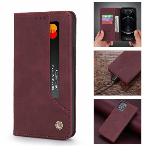 POLA Wallet Case Premium PU Flip Leather Kickstand with Card Holder Strong Magnetic Case Drop Protection Shockproof Cover Suitable for iPhone 13 -Wine Red (FREE SHIPPING)