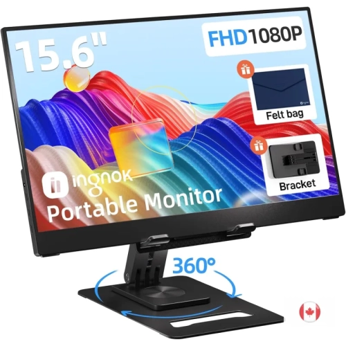 Portable Monitor 15.6" FHD 1080P IPS | USB-C, HDMI, Adjustable Stand | Laptop, Mac, PC, Phone, PS5/PS4, Switch