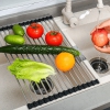 About this itemdown arrowMaterial: Stainless Steel SiliconeWash your veggies & fruits easilyDry your washed utensilsGreat as a pan-cooling rackRust-resistant & non-corrosionEasy to cleanPackage includes: 1* Dish Drainer Rack