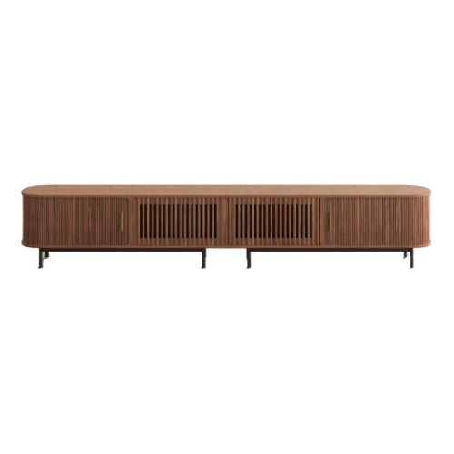 POVISON 118.11" Mid-Century Modern Tambour Door TV Stand - Walnut