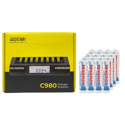Powerex C980 Smart Charger & 16 AAA Tenergy Premium NiMH Rechargeable Batteries (1000 mAh).