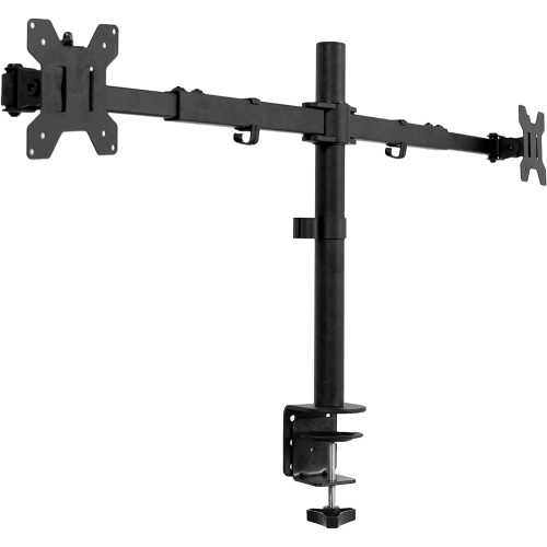 Fits 27' to 38' Monitors - Dual monitor mount fitting two ultrawide and regular screens up to 38' in size and 22 lbs in weight (each) with VESA 75x75mm or 100x100mm mounting holes. Secures to your desk with a heavy-duty C-clamp or optional grommet mount for solid stability. Maximum recommended desktop thickness is 3.25'. --Patent Pending-- Premium Telescoping Arms for Flush Setup - Heavy duty arms adjust in length to fit larger, ultra-wide monitors. Unique telescoping design expands arms straigh