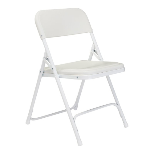 The 800 Series folding chair offers the perfect solution for both indoor and outdoor seating events such as meetings, graduations and receptions. This lightweight institutional-grade chair was made to provide you with the strengths of metal and all the benefits of plastic. The powder-coated 18-gauge tubular steel frame features two double-riveted U-braces - one in front and one in back - to securely support the double-hinged legs. The large seat and backrest are made o...