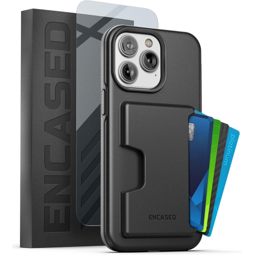 The Phantom Wallet case for iPhone 14 PRO features a compact credit card slot that securely stores up to 4 cards.Constructed of a high-density polycarbonate material to improve both drop and scratch protection for your new device, the Phantom Wallet case provides a strong, protective frame while retaining a sleek modern look.The case includes a built-in wallet so your ID or credit card is always on hand when you need it, while maintaining a slim, pocket-friendly profile.
