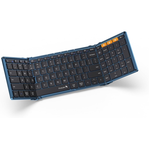 ProtoArc Foldable Bluetooth Keyboard, XK01 Folding Wireless Portable Keyboard with Numeric Keypad, Full-Size Travel Keyboard for iPad Tablet Smartphone Laptop PC iOS,Blue- Open Box