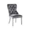 Queensons 2-Piece Leo Luxury Velvet Dining Chair - Grey, Lion Back Knocker, Tufted Upholstered Silver Legs and Finish