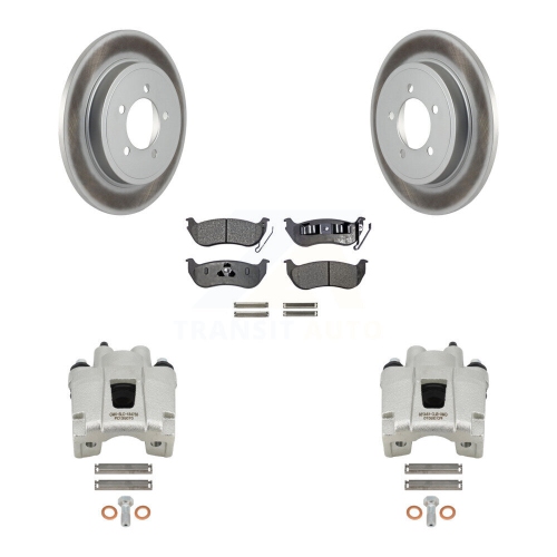 Rear Brake Caliper Coat Rotor Semi-Metallic Pad Kit For Ford Explorer Sport Trac Mercury KCG-100259P