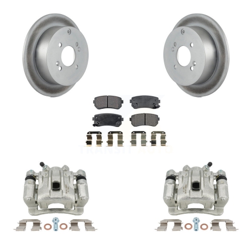 Rear Brake Caliper Coat Rotors Ceramic Pad Kit For 2006-2007 Hyundai Accent Kia Rio5 Rio KCG-100232T